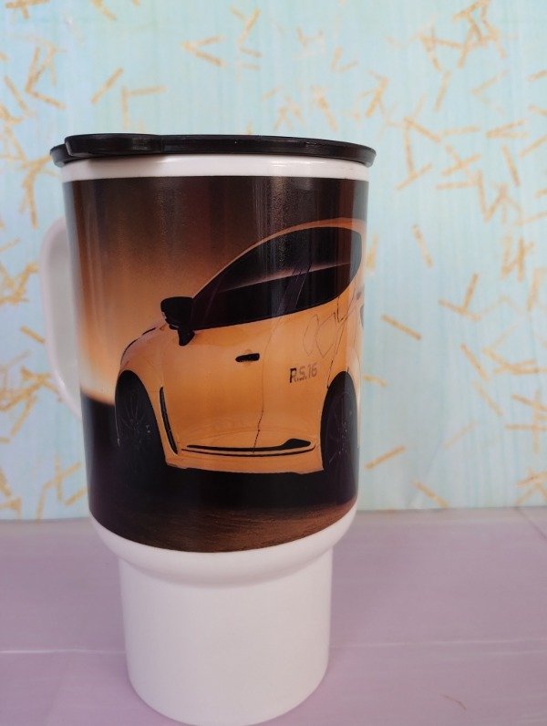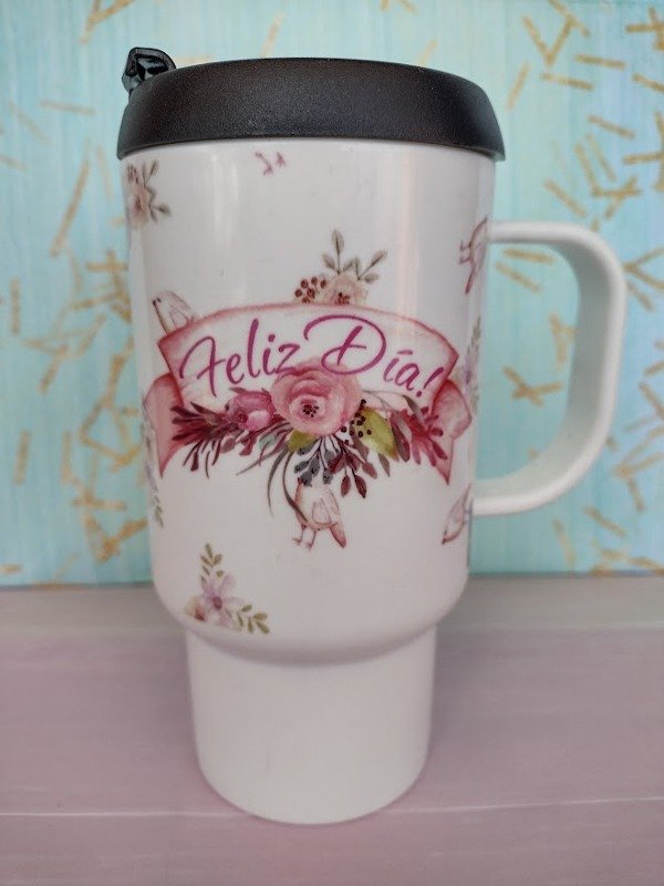 Jarro térmico de polímero con tapa, superficie brillante. Material de alta resistencia a los golpes y el maltrato. Conserva 4 veces más la temperatura que la cerámica. Capacidad 450 cc
