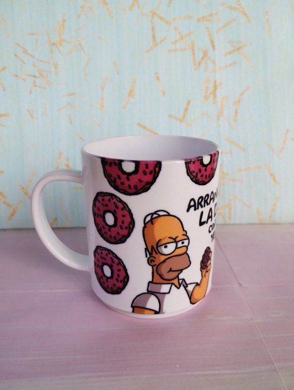 Taza de polímero con alta resistencia a golpes, apta microondas, full color. Capacidad 350 cc, 9 cm de alto x 8 de diámetro aproximadamente.